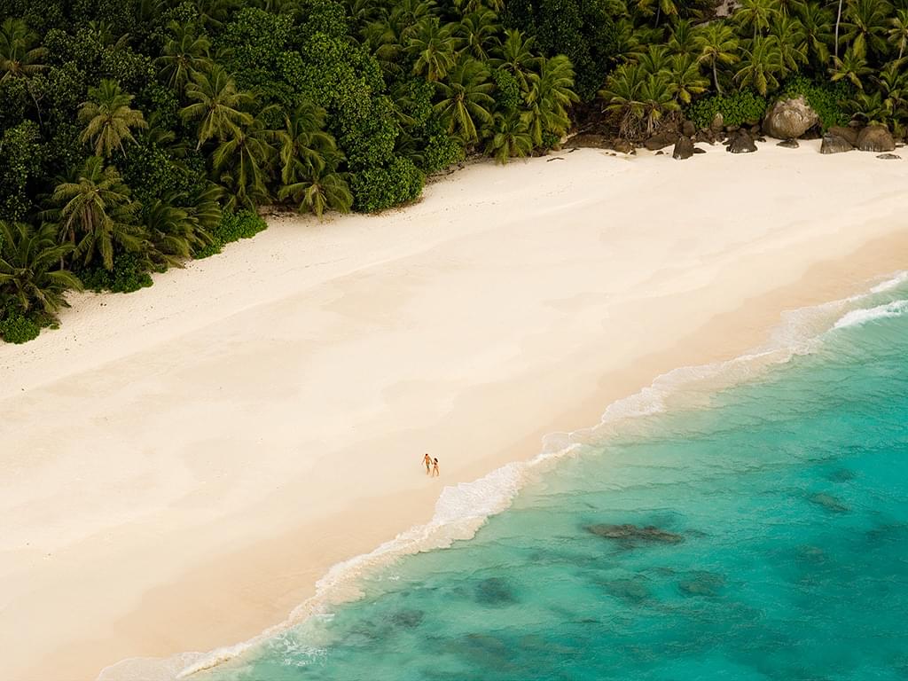 Some 30km from the main island of Mahé, Ile du Nord, or North Island, enjoys private seclusion within the Inner Island group of the Seychelles. Luminous white beaches cosset a tropical interior of coconut palms and takamaka trees cradled between three granite outcrops, 110m to 180m in height, whose polished grey ramparts rise from the white sands and filigree reefs of the azure ocean.