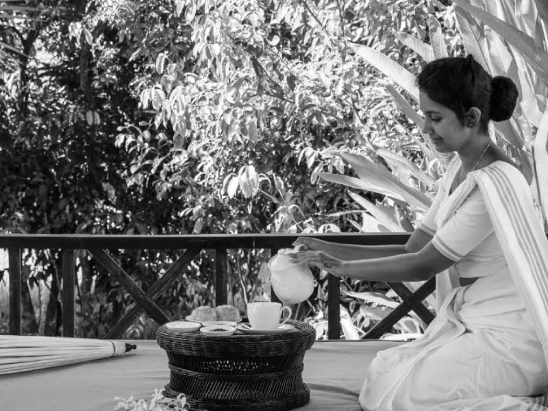 Furnished with period chairs and tables, crisp white linen and antique silverware, the high-ceilinged Dining Room is an intimate setting for meals, which centre on local produce. The daily-changing dinner menu is based on the chef’s finds at the various markets in Galle, and guests can accompany him on his rounds before returning to the kitchen for a cooking lesson in Sri Lankan cuisine.