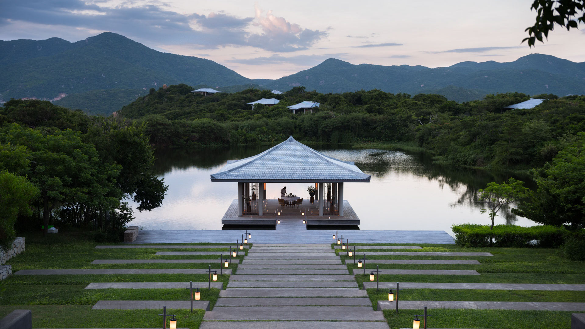 Offering a combined bedroom and living area with an extensive timber sun deck, Lake Pavilions overlook the property’s serene lake. The elegant, contemporary interiors feature traditional Vietnamese touches.