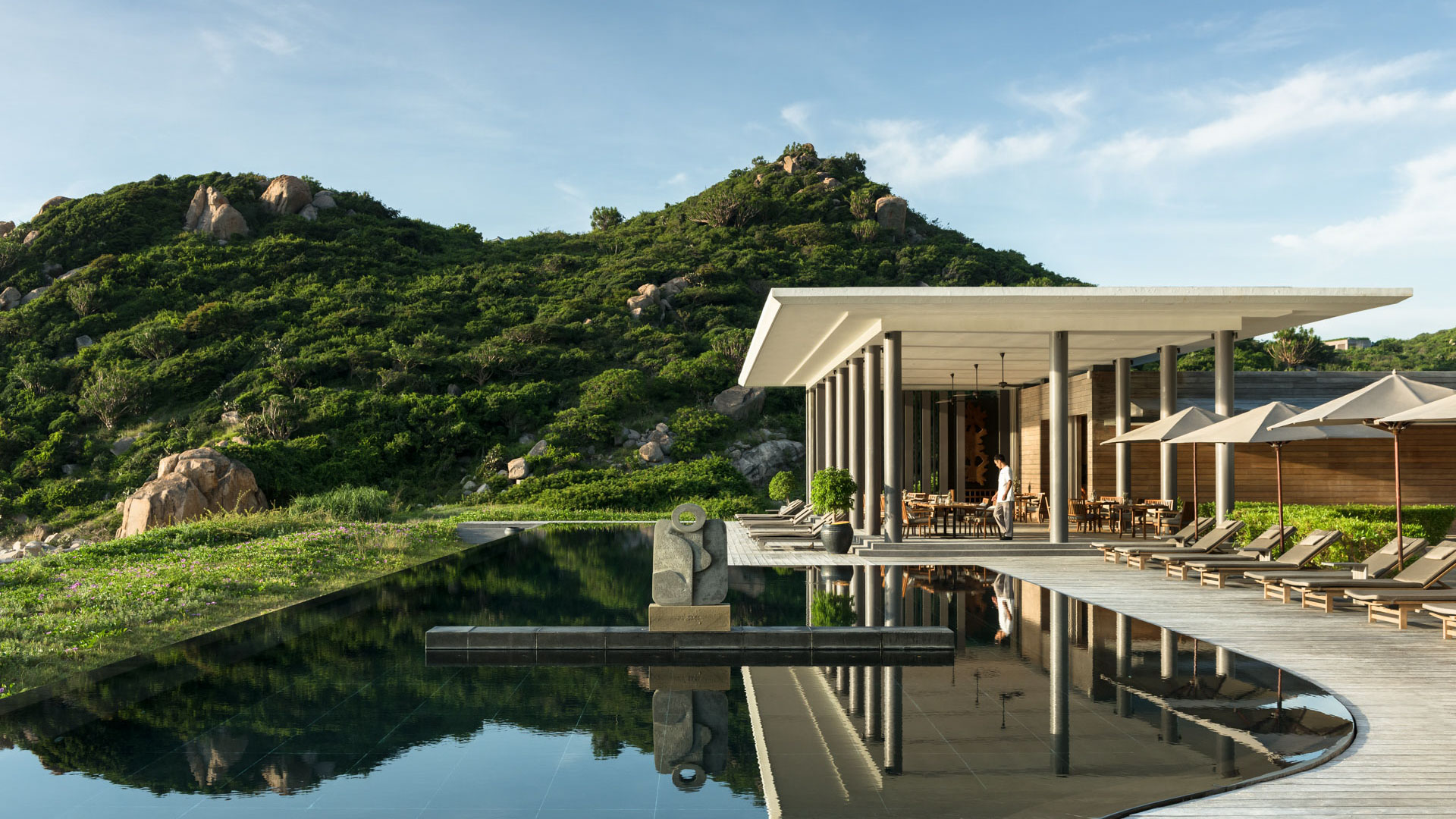 The airy, serene ambiance of Amanoi’s Pavilions and Residences offers a tranquil counterpoint to their dramatic setting. A contemporary take on traditional Vietnamese architecture, they blend seamlessly with the natural surrounds